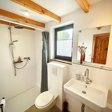 La villa "Room With A View" Wunderschoenes Haeuschen Mit Traumblick Und Kaminofen dispone di un bagno con un bagno con WC separato e una doccia. Gli asciugamani sono inclusi per un maggiore comfort.